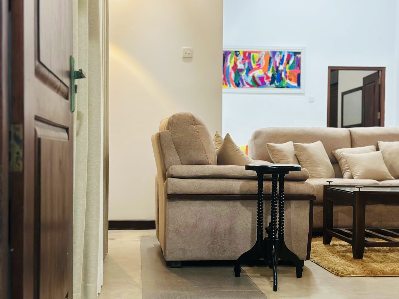 This beautifully designed, fully furnished house is located just 8 km from Negombo Town, 10 minutes drive to Ja Ela Highway, offering a perfect balance of tranquility and convenience. Sitting on 16 perches of land and spanning 1,710 square feet, the home features three spacious bedrooms, two modern bathrooms, and two convenient store rooms. The interior is tastefully decorated with coordinated furnishings, creating a warm and welcoming atmosphere that blends comfort with style.